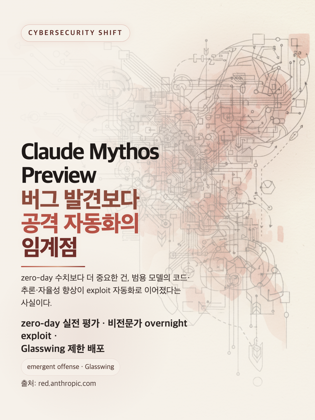 Anthropic은 이번 발표에서 "새 모델이 나왔다"보다 더 불편한 메시지를 던졌다. 범용 모델의 코드 추론·자율성 향상이 어느 순간 exploit 자동화로 이어졌고, 이제 기존 보안 관행만으로는 버티기 어려운 과도기가 시작됐다는 선언이다.