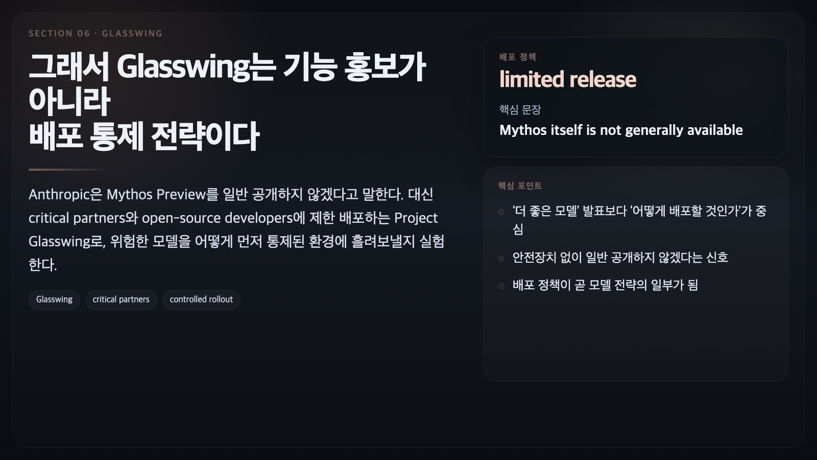 - 왜 공개 안 하나 — 일반 공개보다 제한 배포(Project Glasswing)를 택함