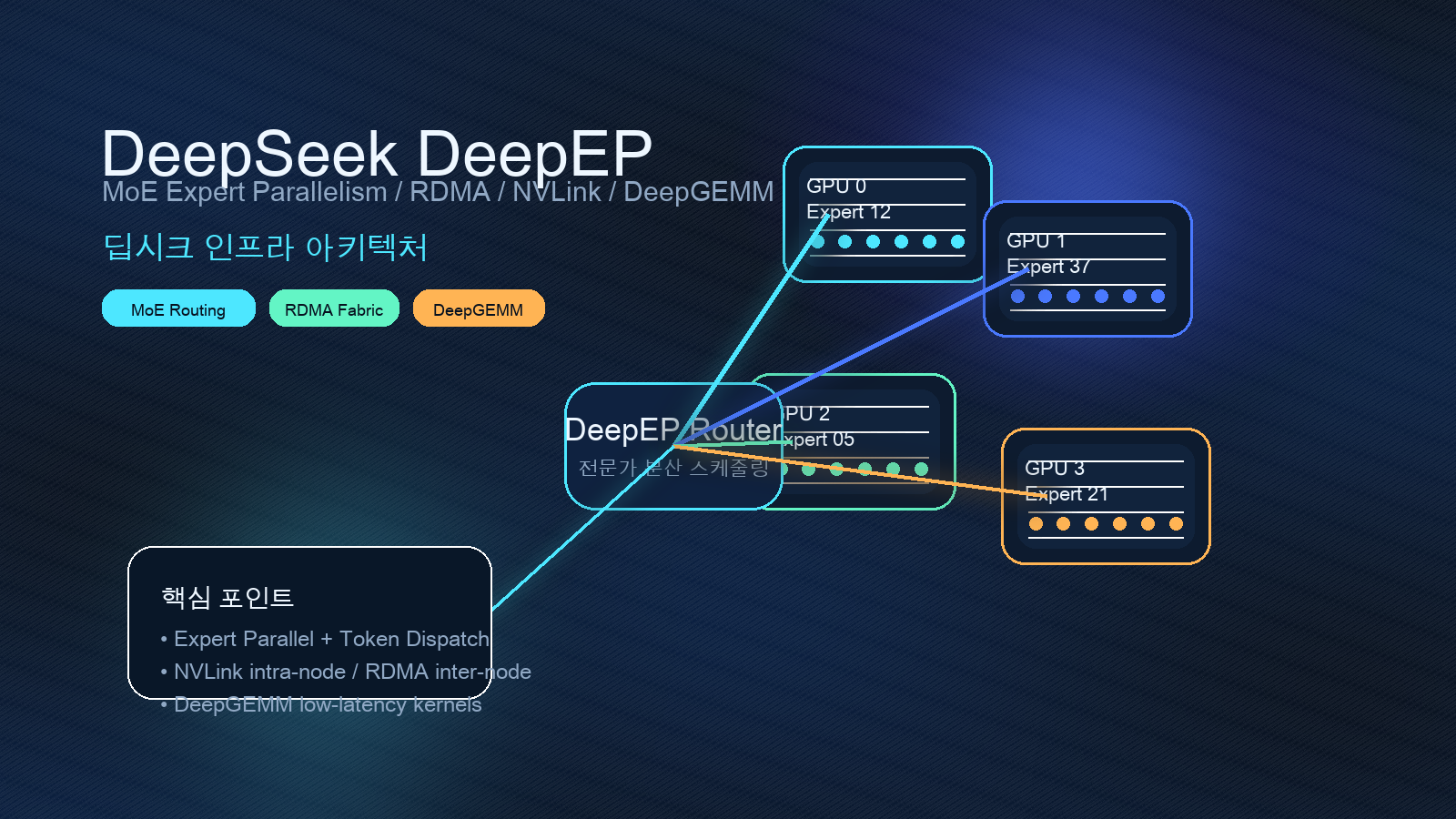 - DeepSeek-V3/R1 계열 MoE를 실제로 돌리려는 인프라 엔지니어