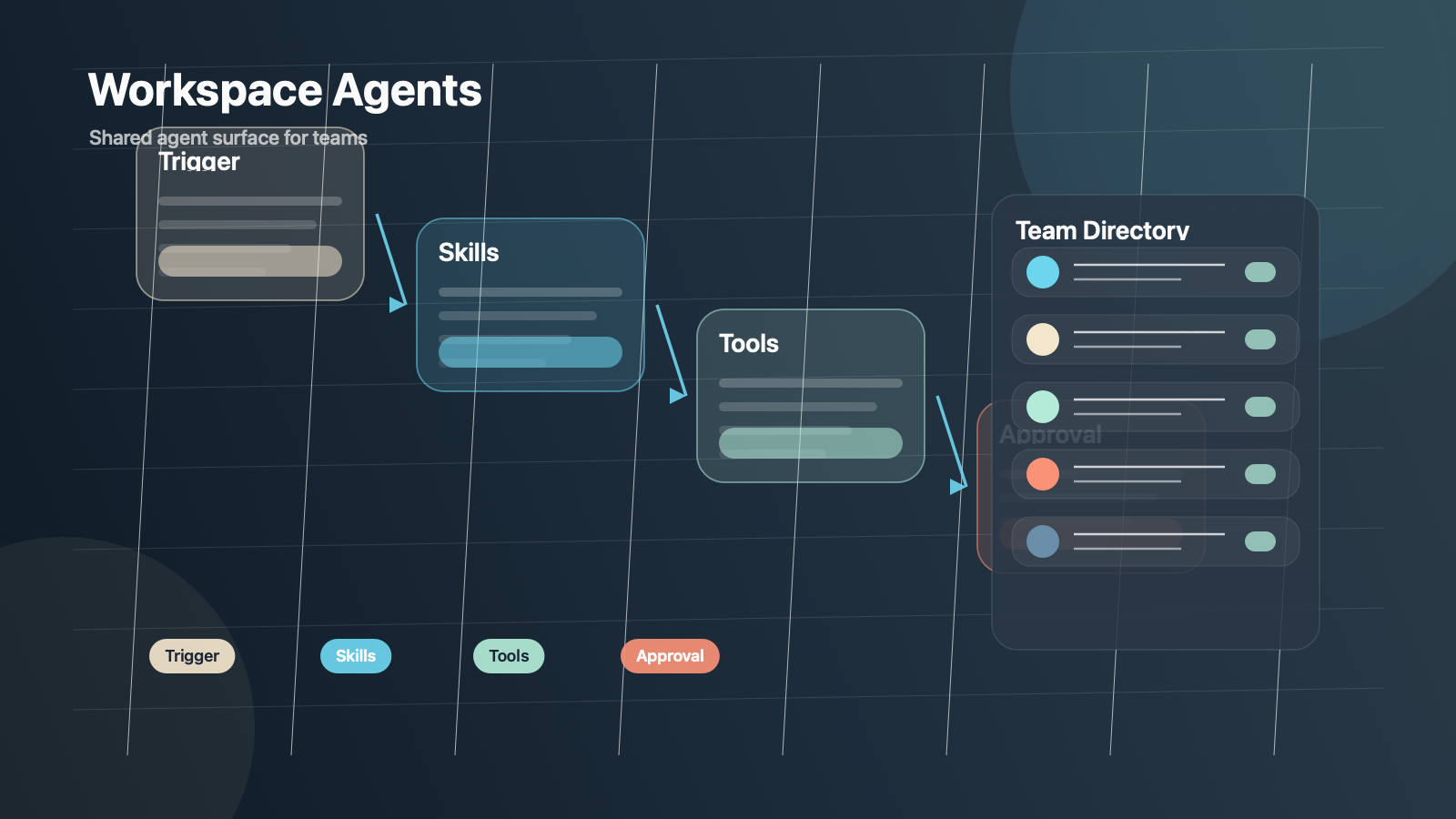 - workspace agents는 공유 가능한 장기 실행 workflow